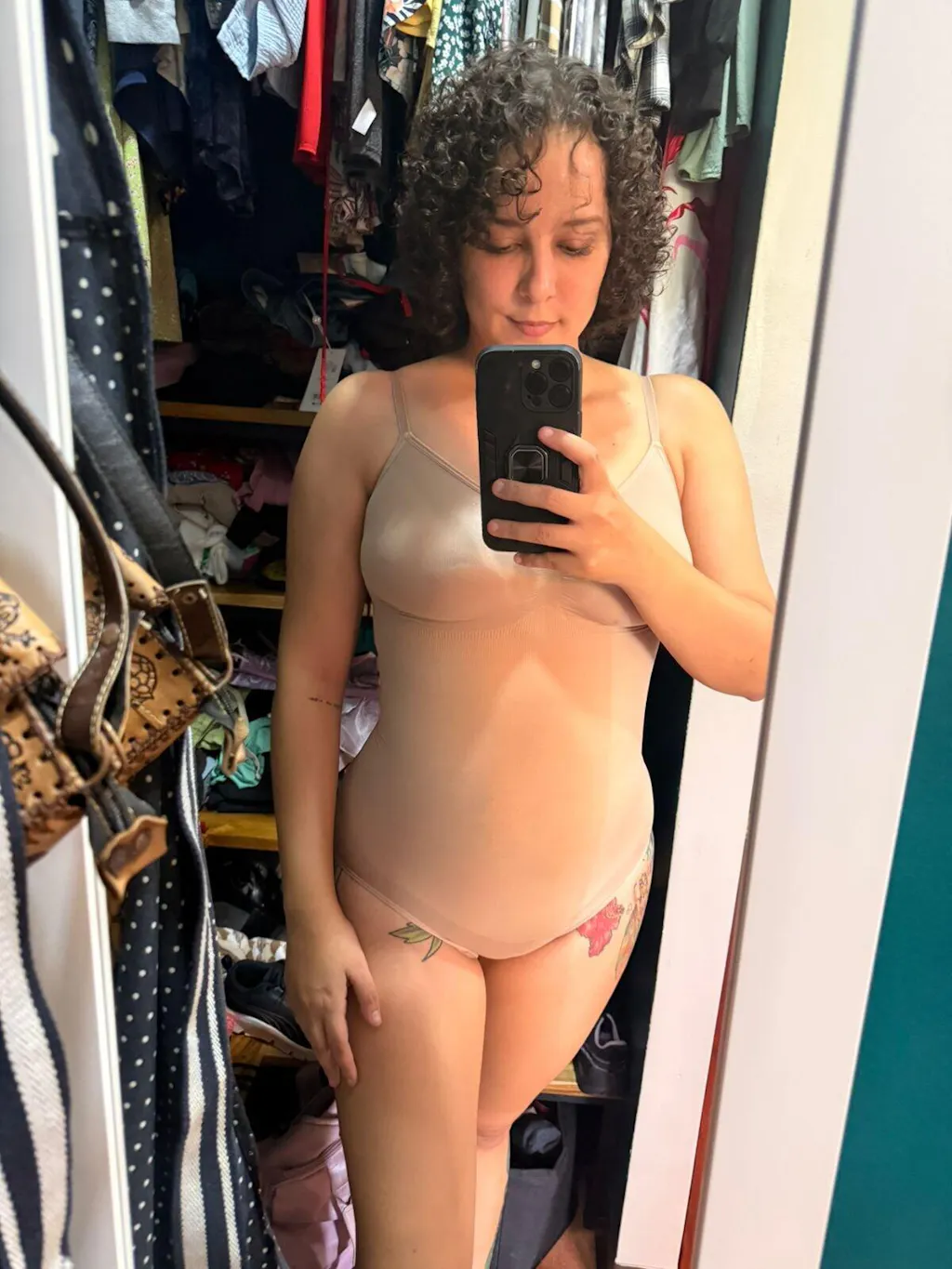 Es muy suave, muy buena tela, no se siente como que uno se este ahogando, me gusta el soporte del brassiere pero se enrrolla en la cadera y eso hace que haya que estarselo acomodando y sea incomodo despues de un tiempo, no por la presión o por la tela, sino porque como se enrolla queda muy apretado en la cadera.
