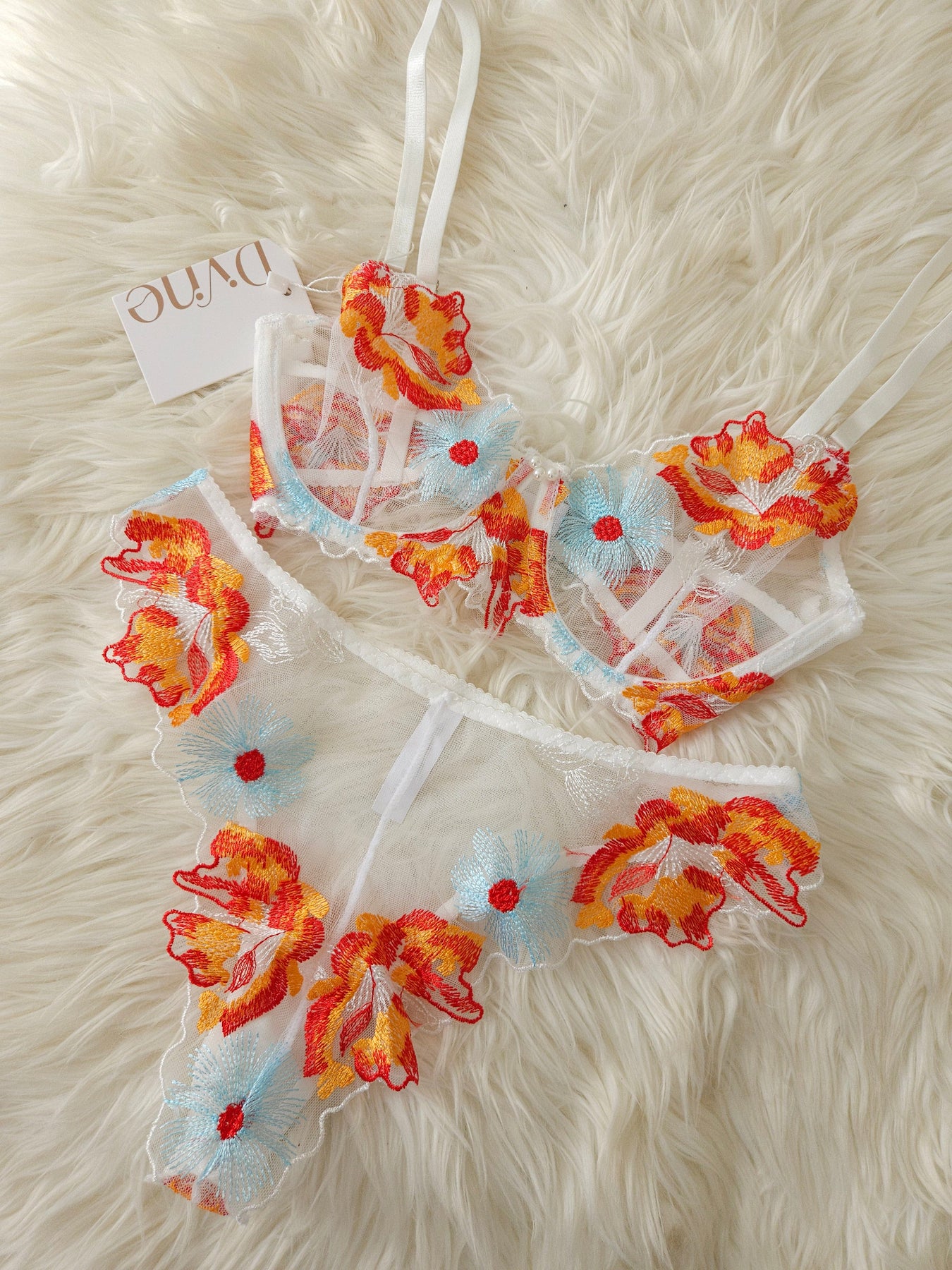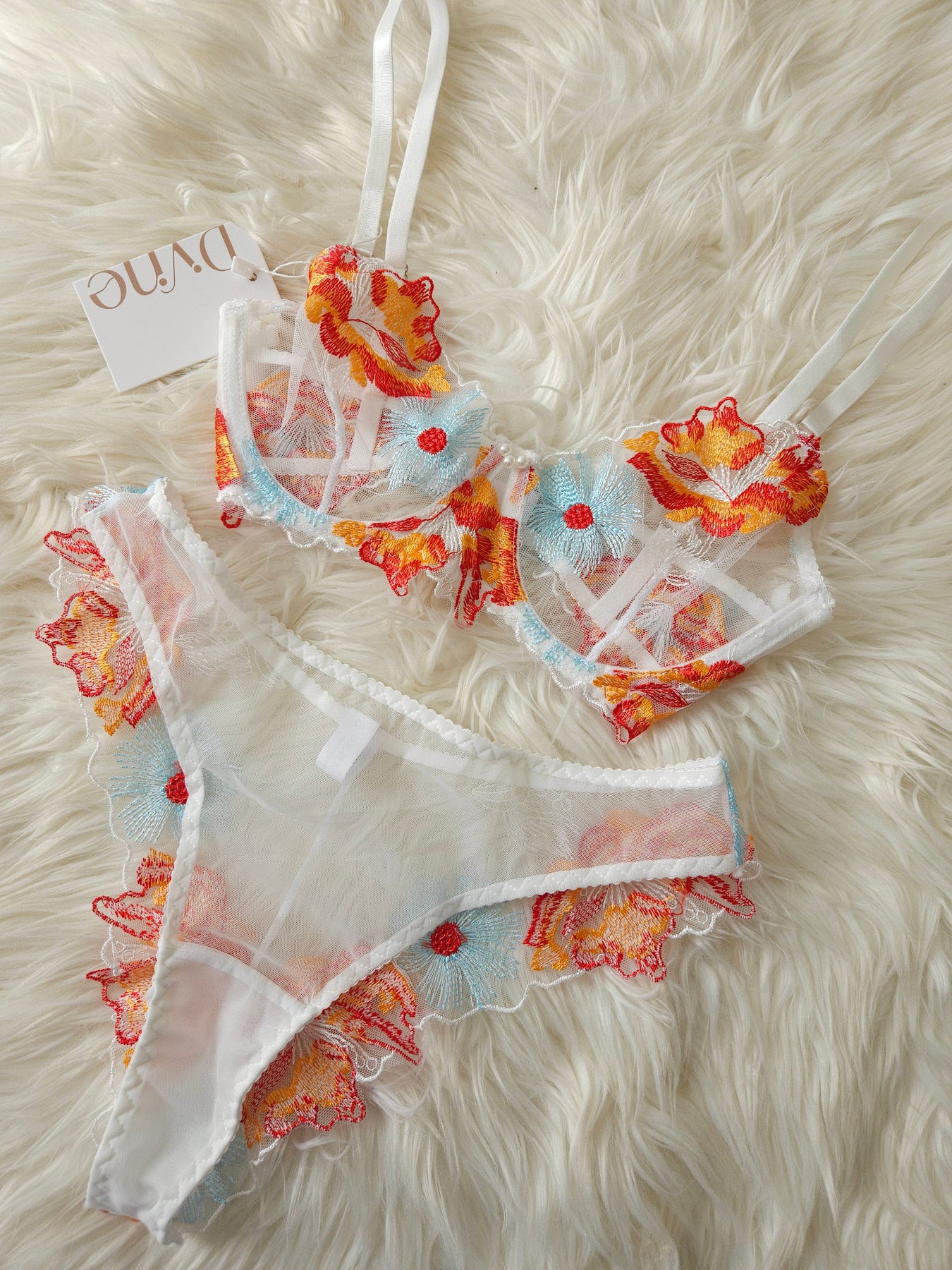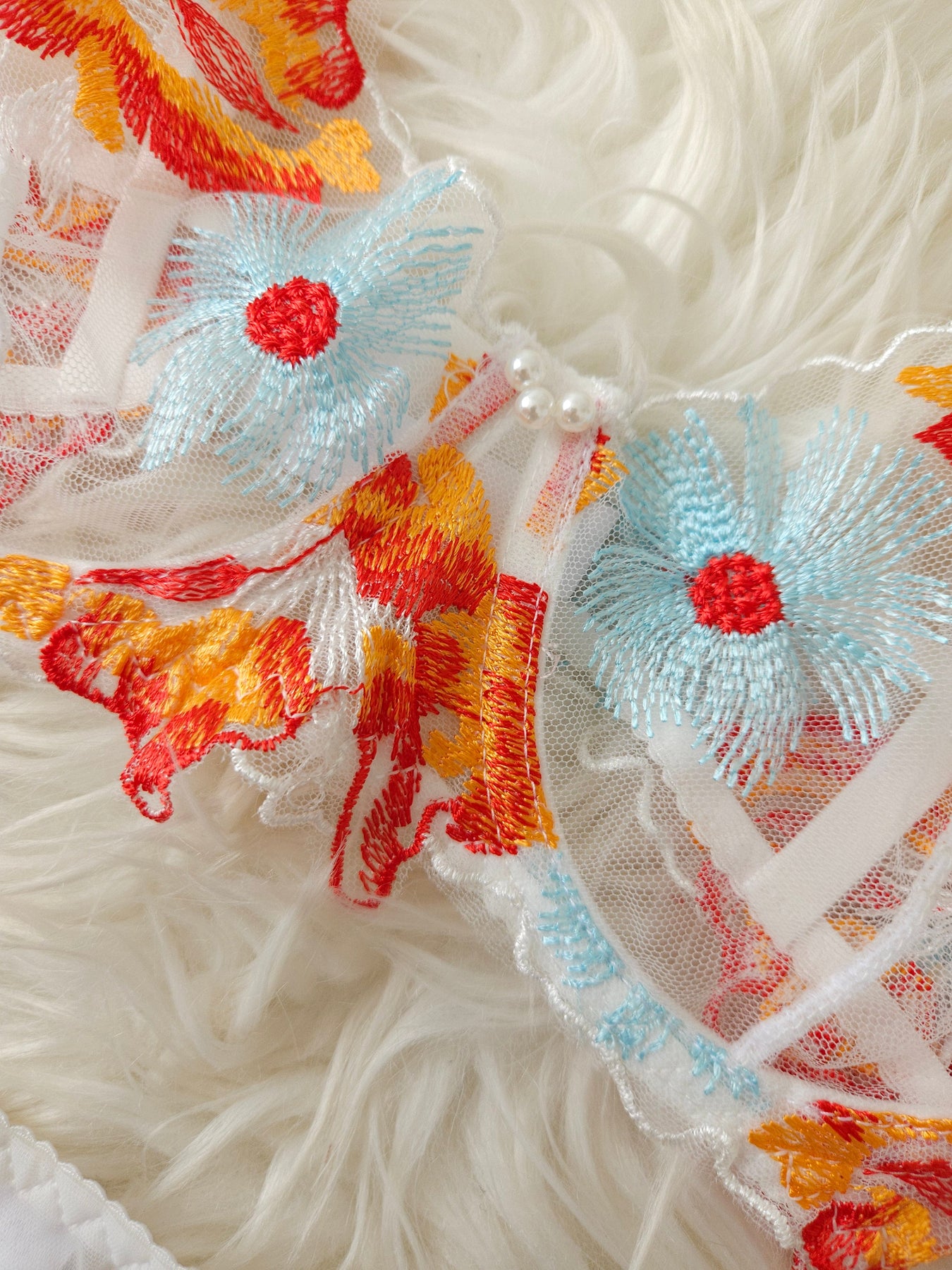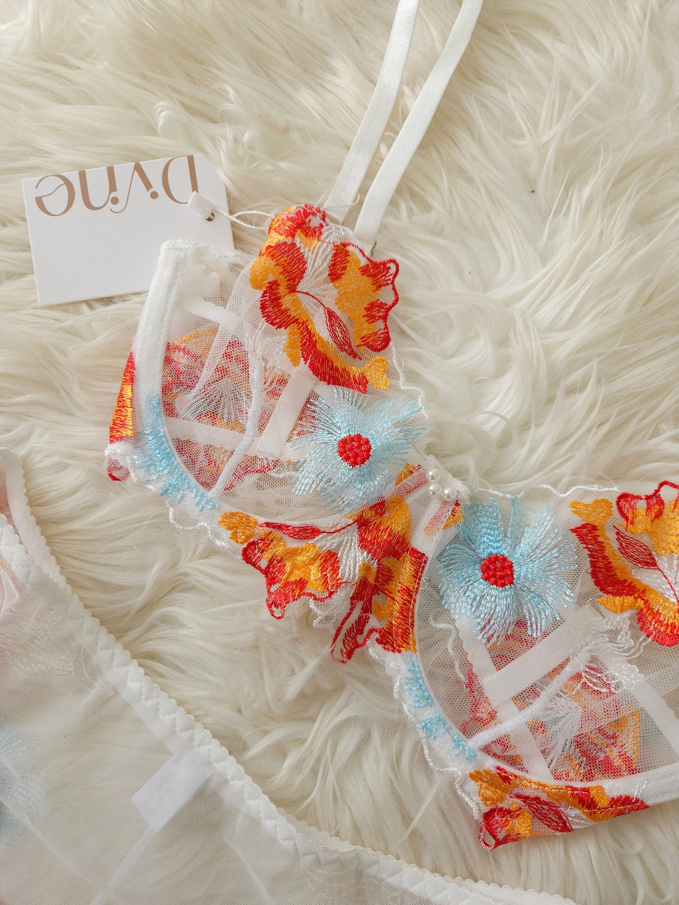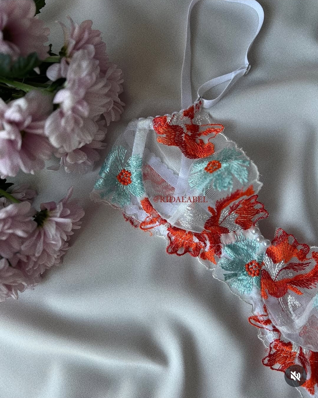 • 🌸 Encaje y tul bordado de alta calidad, suave al tacto